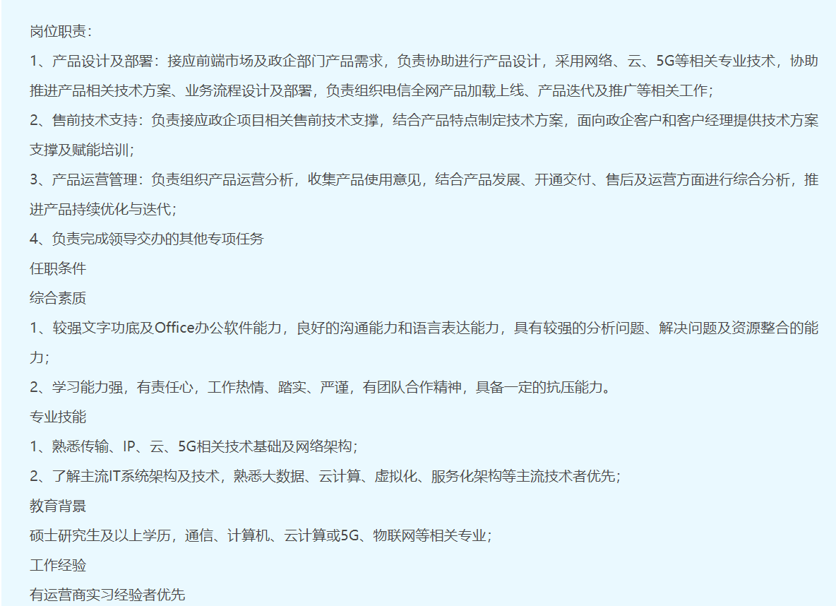 中国电信校园招聘北京产品经理招聘公告